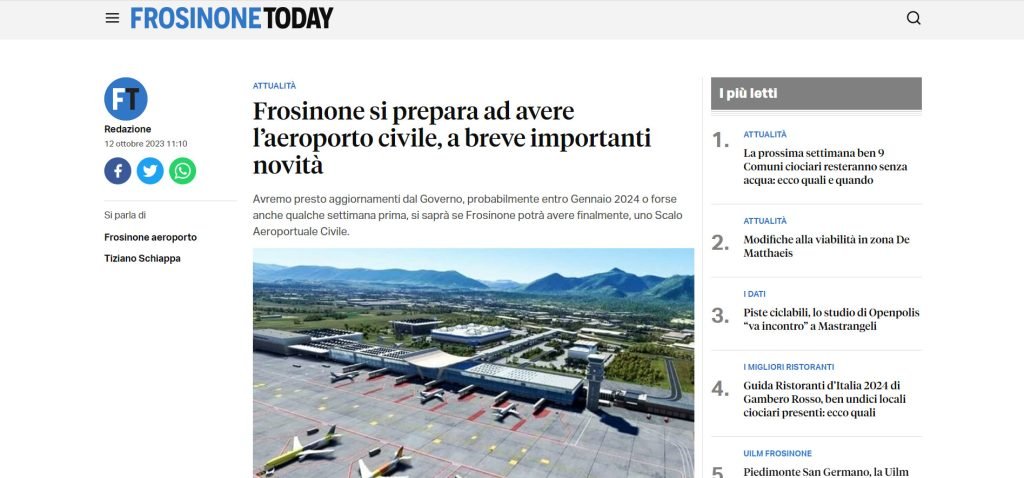 Frosinone si prepara ad avere l’aeroporto civile, a breve importanti novità